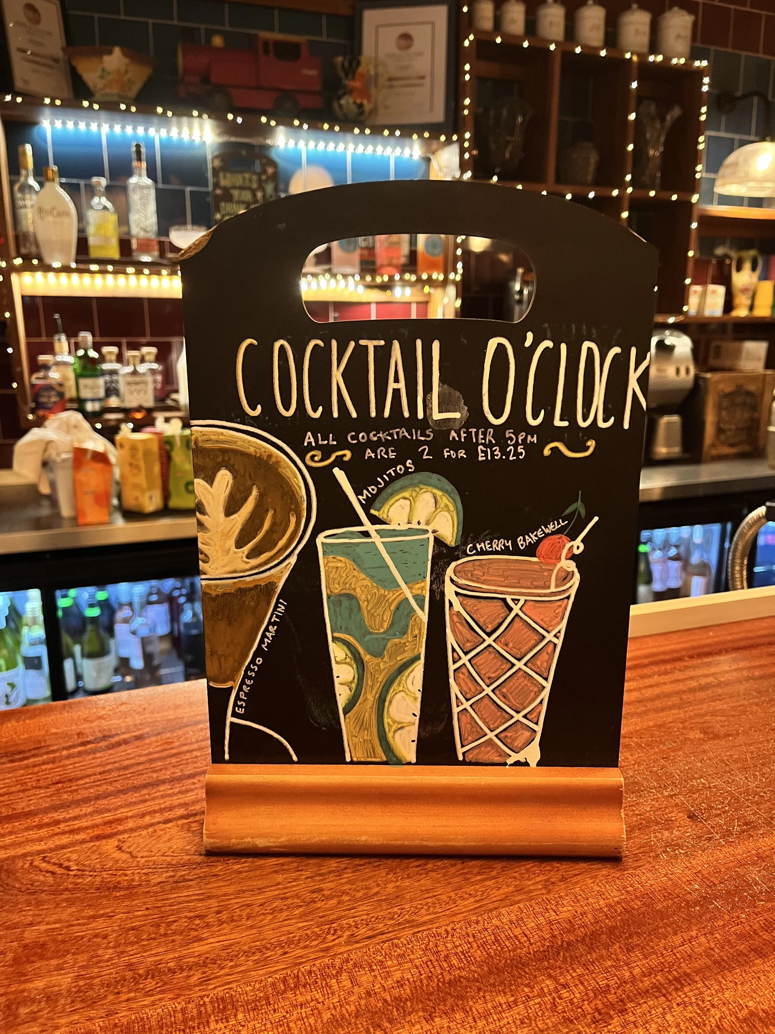 This project involved creating a series of vibrant, eye-catching A4 chalkboard signs and an A board pavement sign using a selection of Posca markers to advertise ongoing food and drink promotions at Tiempo Lounge. Designed to attract attention and drive sales, the signs reflect a fun, cheeky summer vibe while staying consistent with the shop’s branding and aesthetic. Key Promotions featured include: a new wine selection, refreshing smoothies and featured cocktails. Whilst also pushing focus on food and drink deals like ‘Cheeky Mondays’ and ‘Tapas Tuesdays’ for further engagement. Tiempo Lounge also hosts a variety of events such as parent and baby groups, live music and interactive events like pottery and prosecco evenings. We left the back of the A board relatively free so we could update it regularly to keep our customers up to date with the latest news.